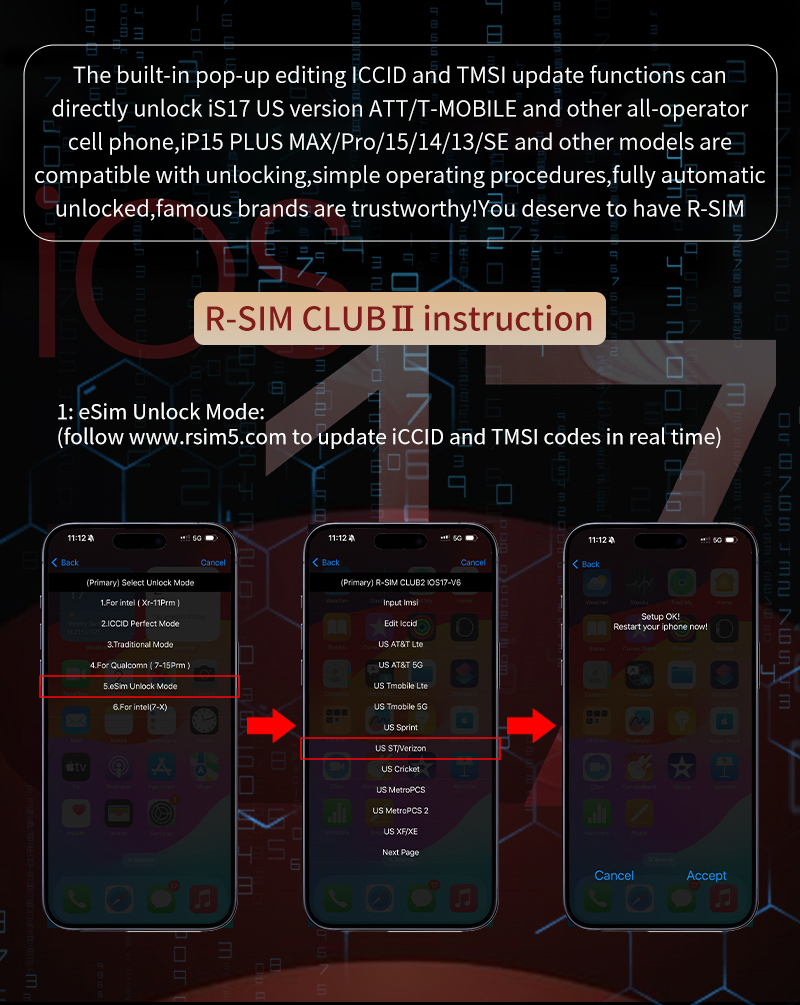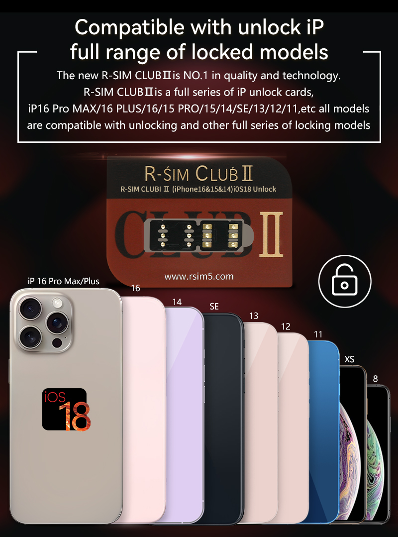 R-SIM CLUB2 is a new debugging of the IOS18.X iOS17 system's unlocking compatibility stability based on the original CLUB1 mode, making the unlocking of older iPhones more stable in iOS18.X system mode. At the same time, E-Code mode adds a virtual secondary card to the iPhone through the R-SIM unlocking code, making TMSI and QPE unlocking modes more stable and equivalent to unlocked. The new R-SIM1 CLUB2 can solve almost all iOS18.X systems on the market, including iPhone16 Pro max/15PRO/15/14/13/12. R-SIM CLUB2 is a club that gathers various unlocking modes, with low prices and extremely high cost-effectiveness. From the first generation of R-SIM to today's 19th generation and CLUB2, there are also GEVEY/X-SIM/SAMSIM/REBEL SIM cards released in the middle time. The current R-SIM CLUB2 stable version iOS18.x unlock card is the most reliable iPhone unlock card for the most stable unlock information brand on the global market.